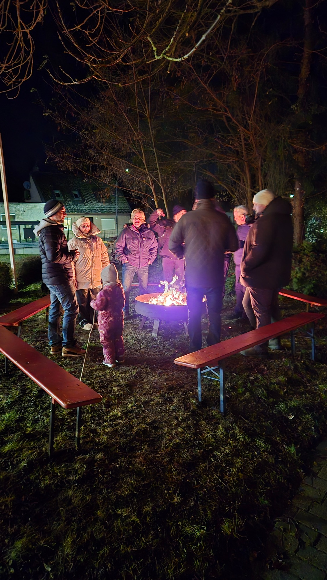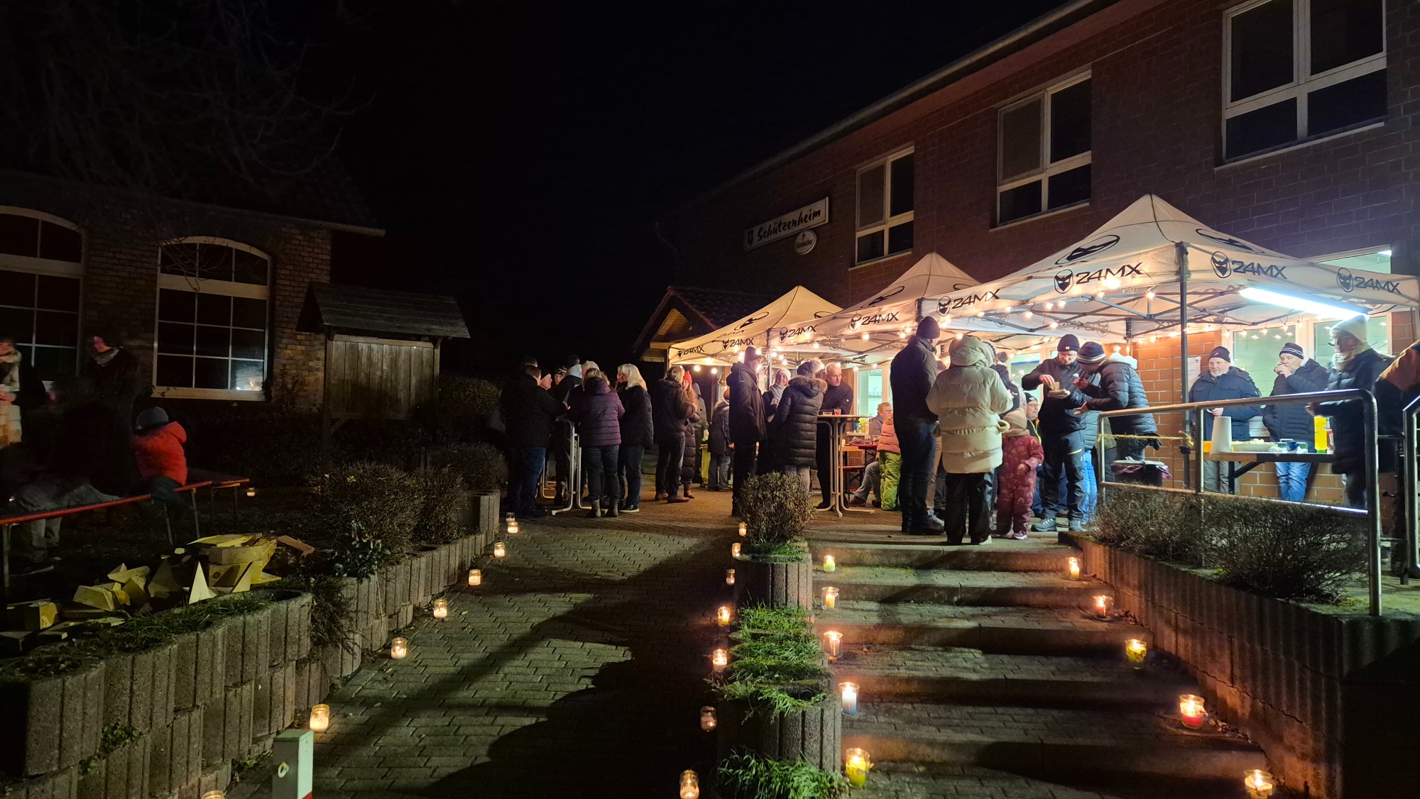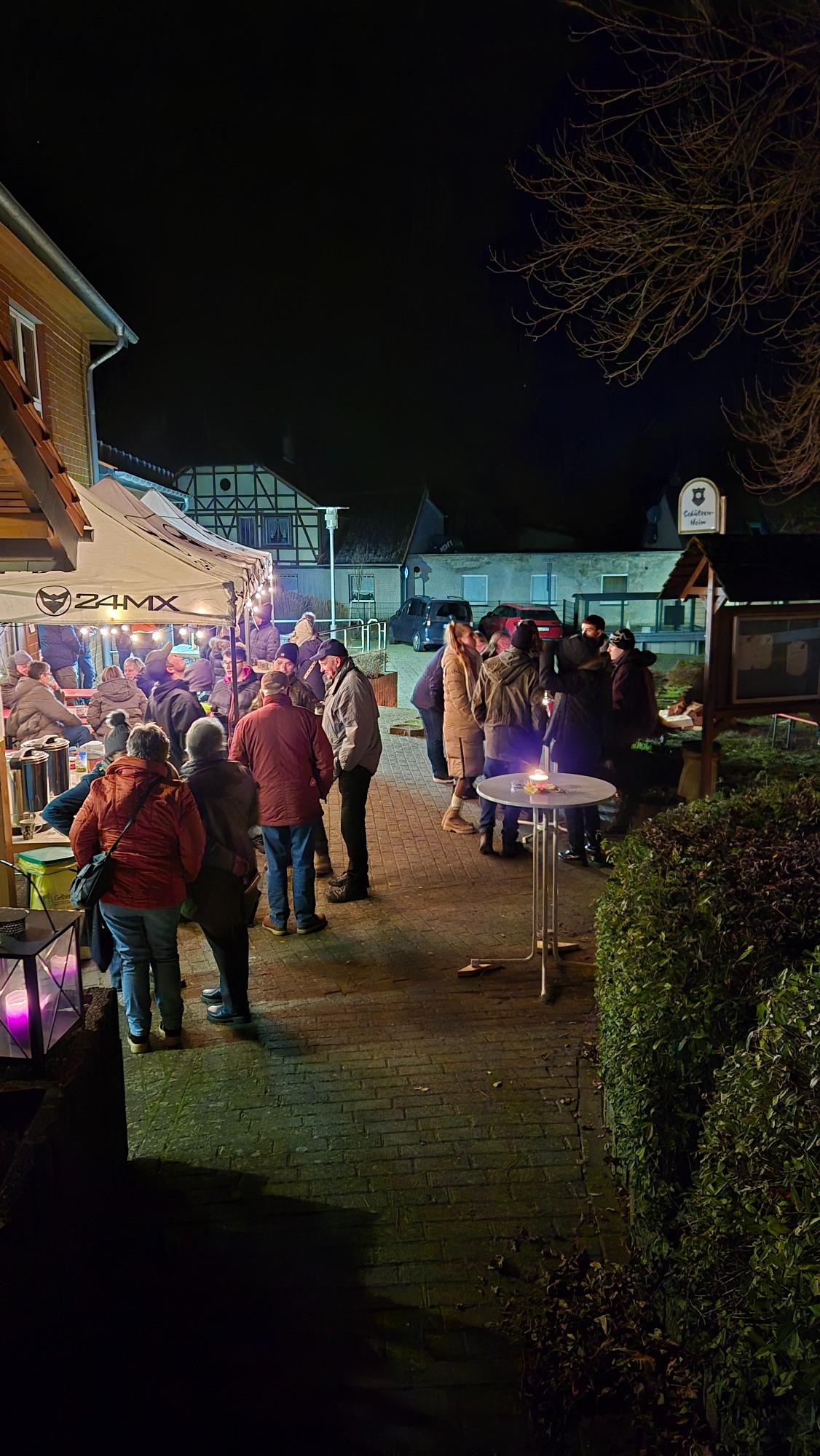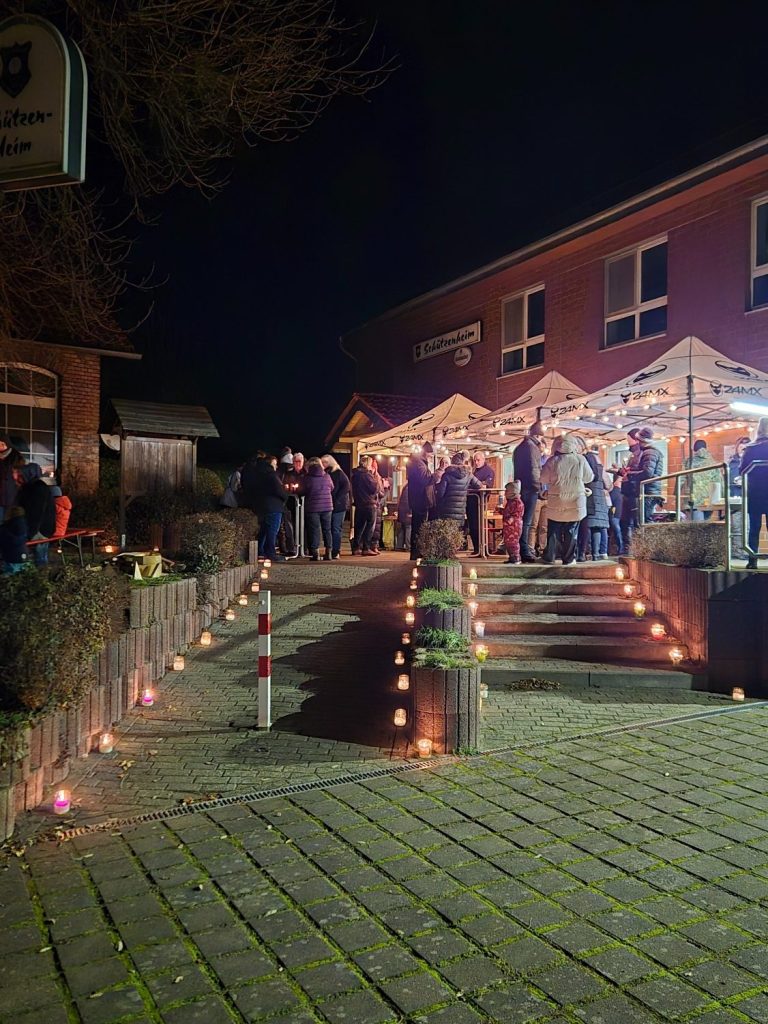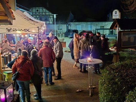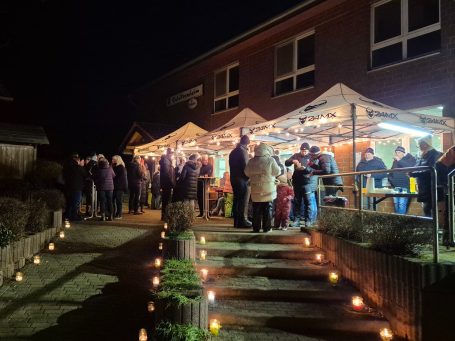 Bei gemütlichen Kerzenlicht und wärmenden Feuer trafen sich Wettmershäger*innen mit Freunden am Haus der Vereine zum leckeren Glühwein vom Sülfelder Korn, Bratwurst und Schmalzbrot.