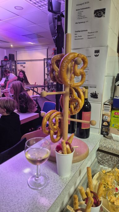 Hinzu kam eine große Auswahl an Weinen des Weinguts Dorst mit vielen weiteren Leckerein von der Brezel über den Zwiebelkuchen bis hin zum Käsespieß.