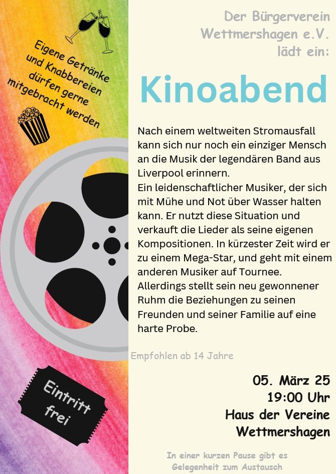 25 Wettmershäger verbrachten am 05.03.2025 einen gemütlichen Abend im Haus der Vereine bei einem Film mit viel guter Musik.