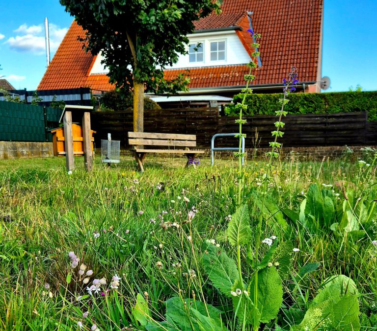 Kommt vorbei, genießt eine Pause auf der Bank und lauscht dem Summen und Krabbeln